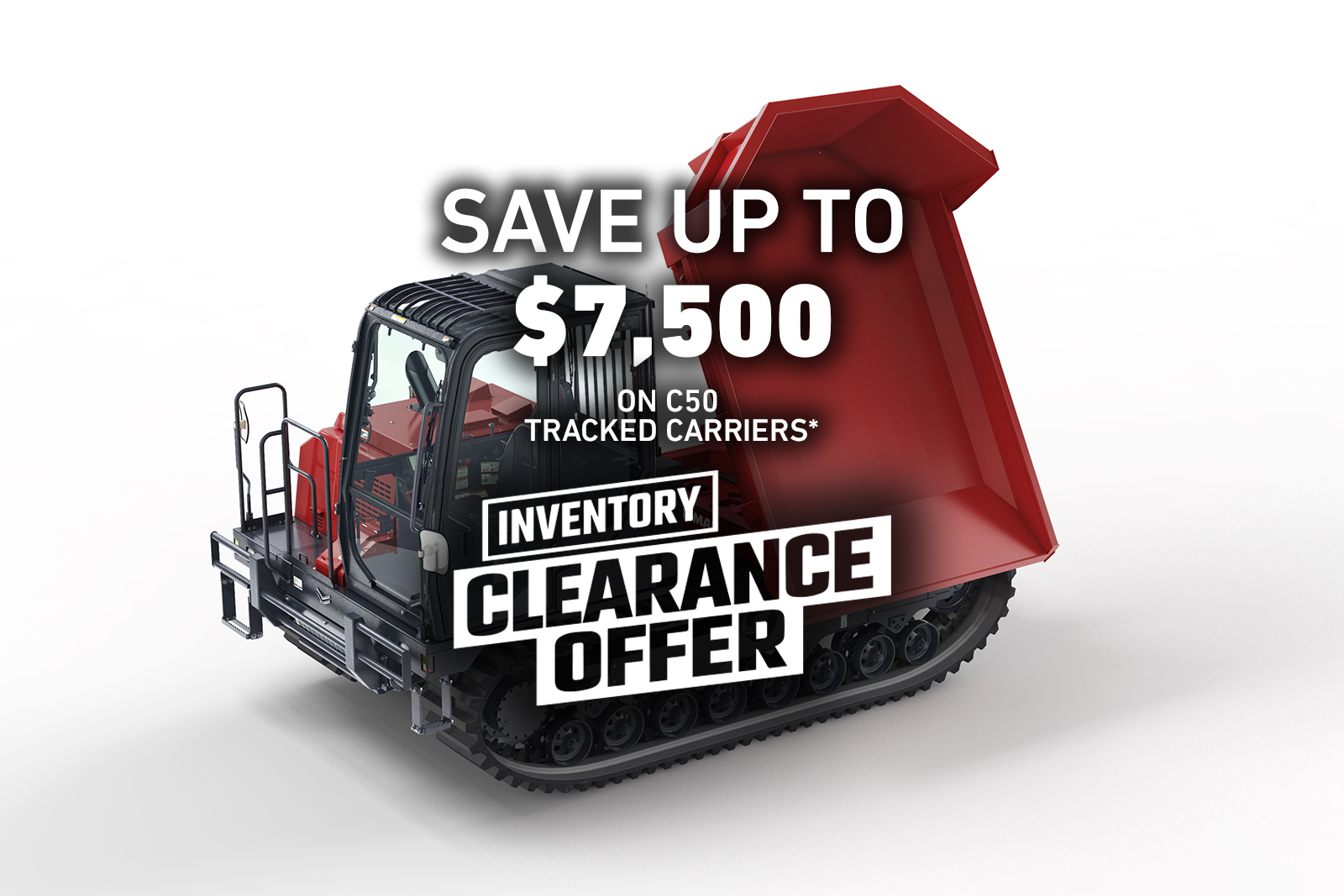 Haul in the savings when you take advantage of year-end sales programs for Yanmar Tracked Carriers. Save up to $7,500 or receive 0% financing for up to 60 months*. This offer is available on select 2024 and earlier models. Hurry, offer ends February 28, 2026.